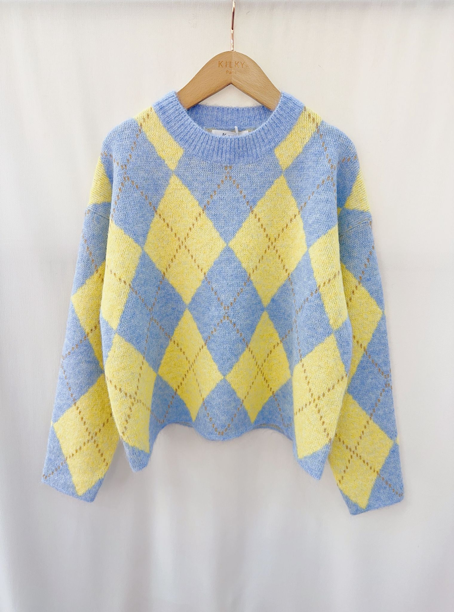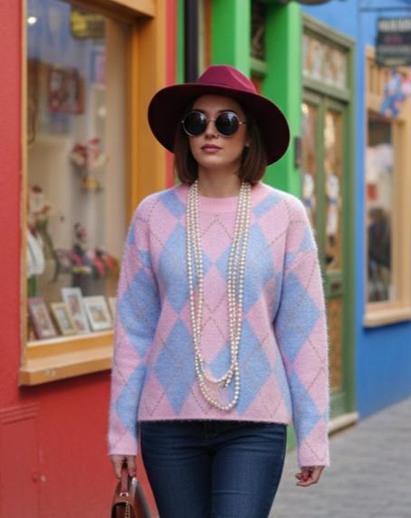Soft, stylish and effortlessly eye-catching — this Argyle Knit Jumper is a standout piece for your spring wardrobe.