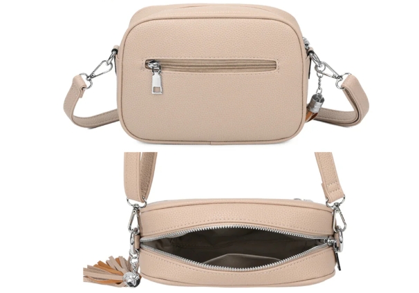 This stylish camera bag is the perfect everyday essential. Designed with a single zip main compartment, it offers just the right amount of space to keep your must-haves organised while on the go. Finished with a matching crossbody strap for comfortable, hands-free wear and a chic tassel side feature for added detail, it’s a timeless piece that works effortlessly with any outfit.