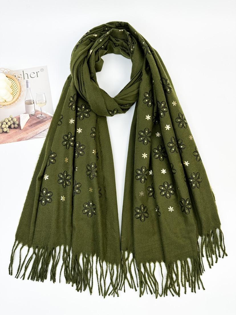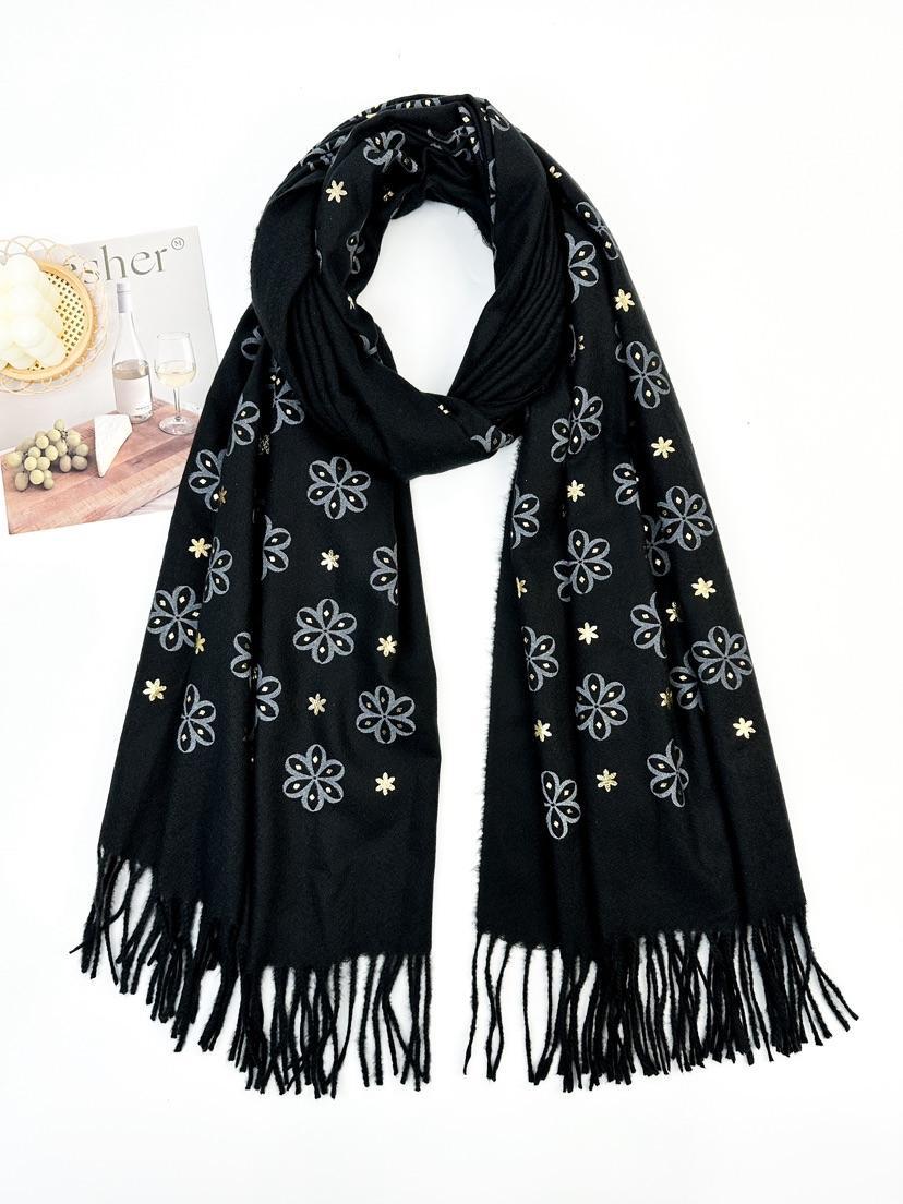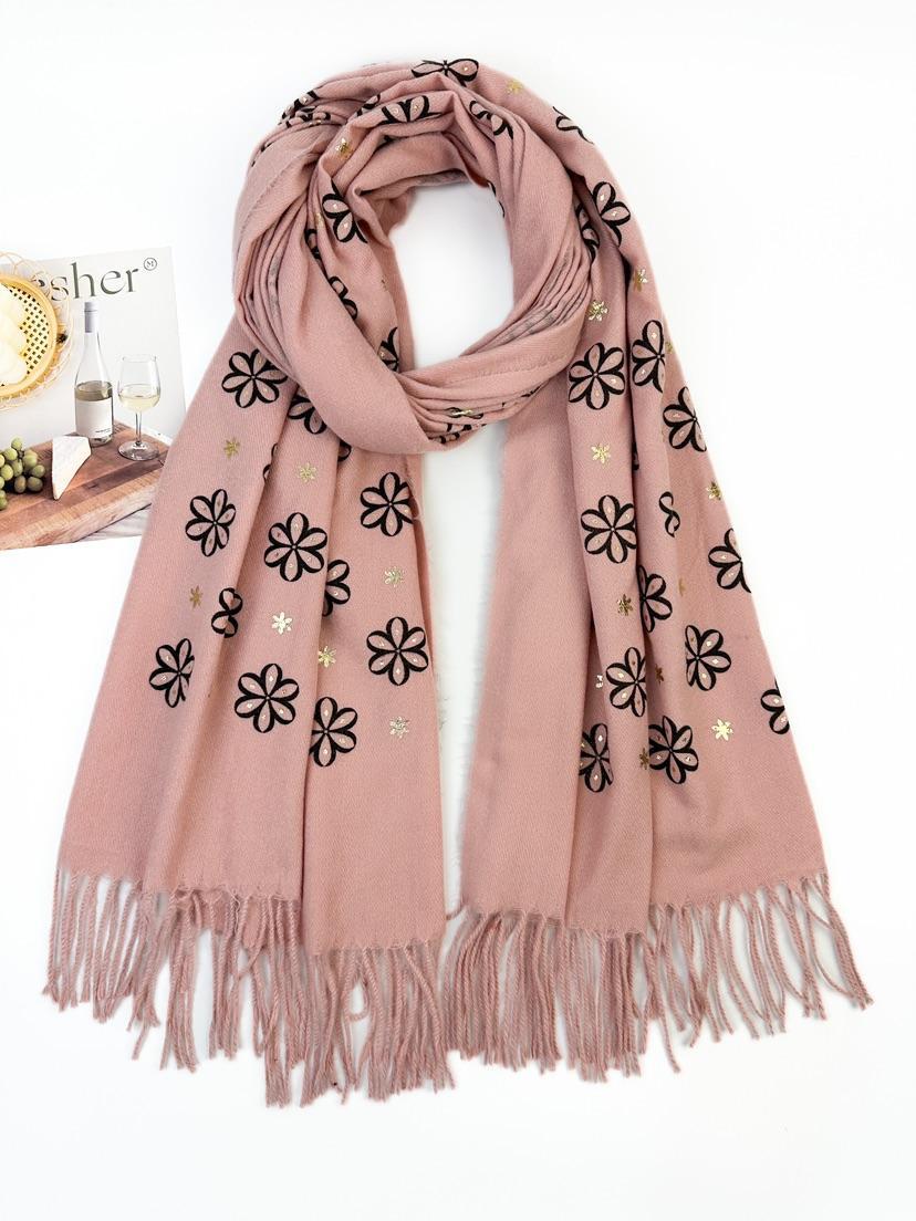 Wrap yourself in effortless elegance with our Daisy Dreams Pashmina Scarf โ a soft, lightweight layer that adds a touch of charm to any outfit. Featuring delicate embroidered daisies with subtle gold accents, this scarf brings a hint of sparkle and femininity to your look. Finished with classic tassel edging for a timeless touch.