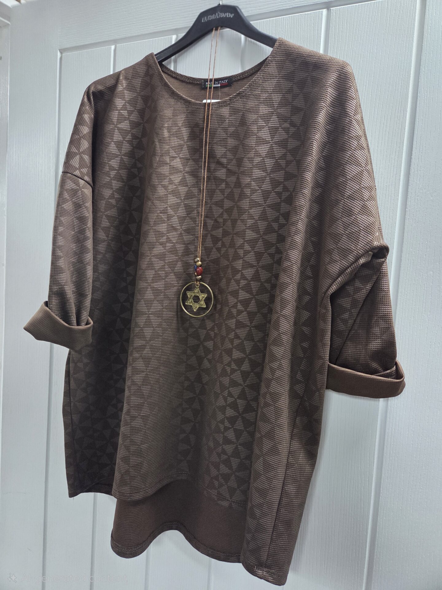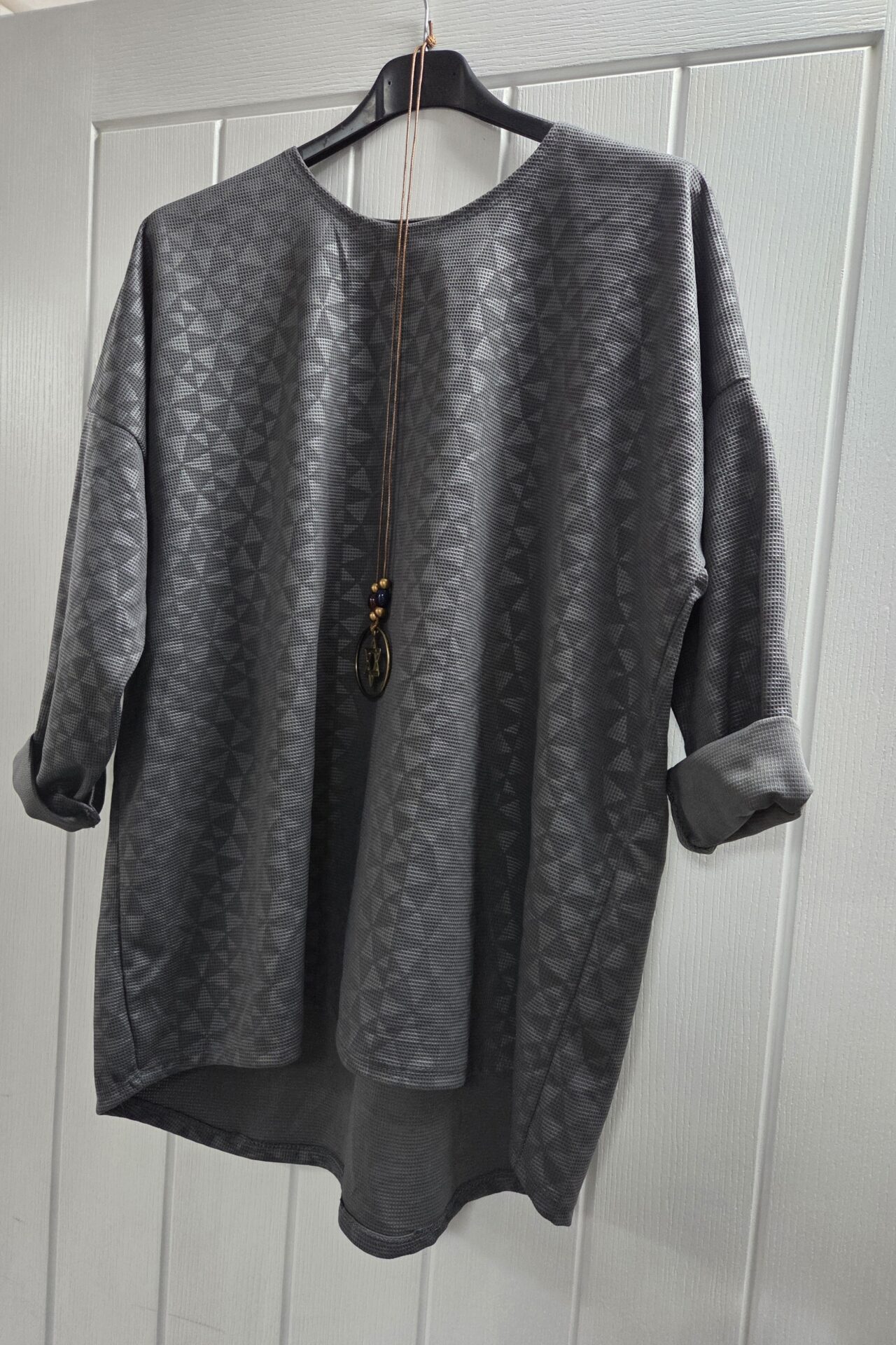 Introducing The Diamond Comfort Top — a soft, easy-to-wear piece designed with a chic diamond print that instantly elevates your everyday style.