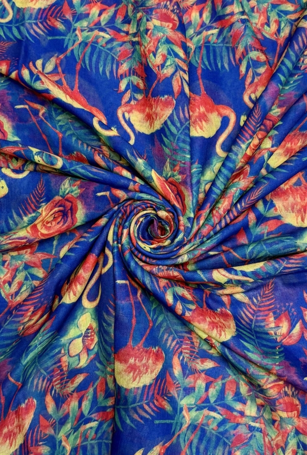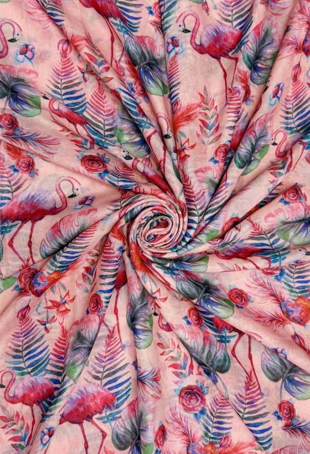 Tropical flamingo vibrant print in this spring style lightweight scarf
