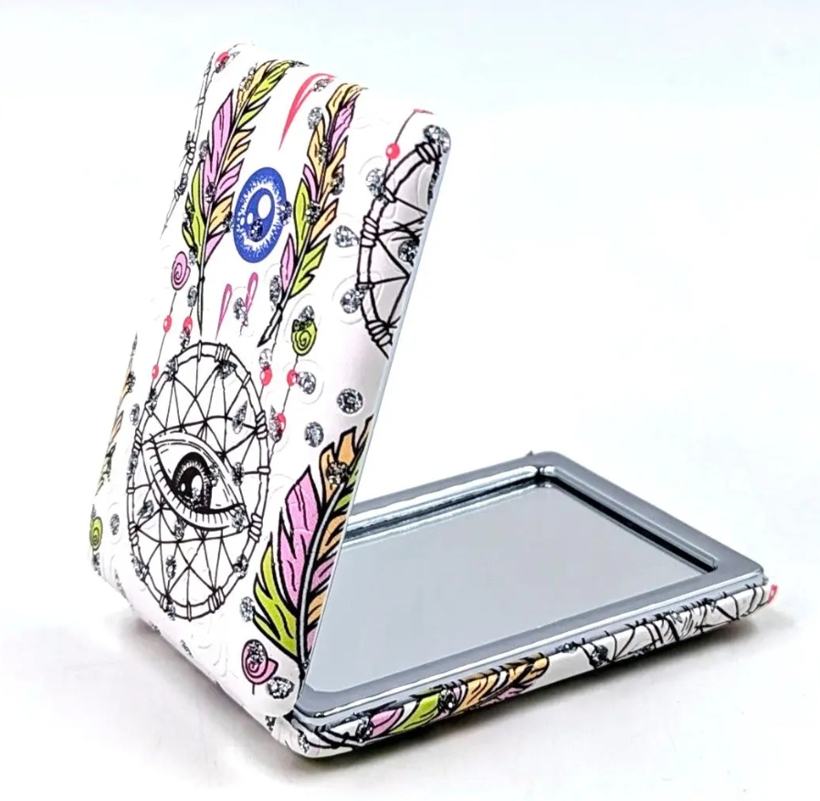Each mirror features a beautiful printed design, with a range of eye-catching styles to choose from so you can pick one that suits your personality or matches your accessories.