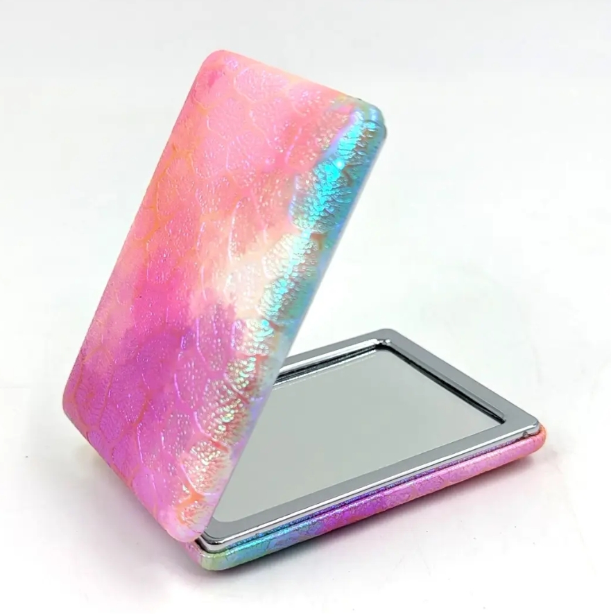 The folding design protects the mirror when closed and also allows it to stand open for convenient use on the go — ideal for makeup checks, lipstick touch-ups or travelling.