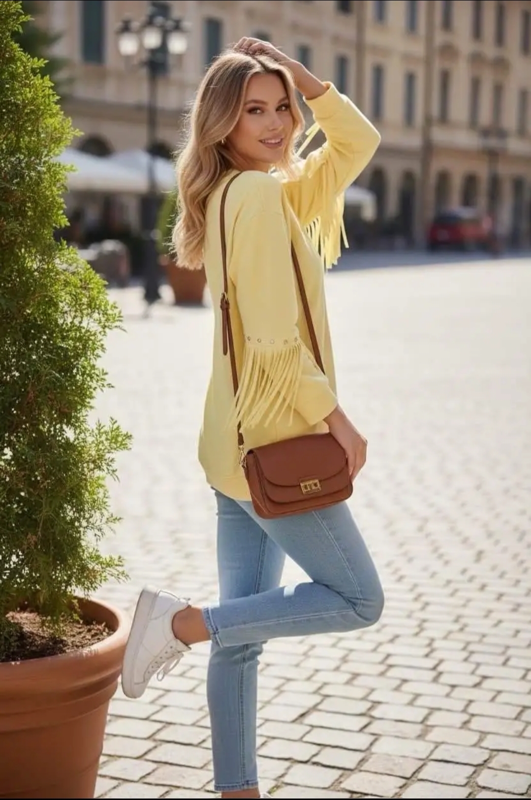 ✔ Flattering longer sleeve with fringe detail