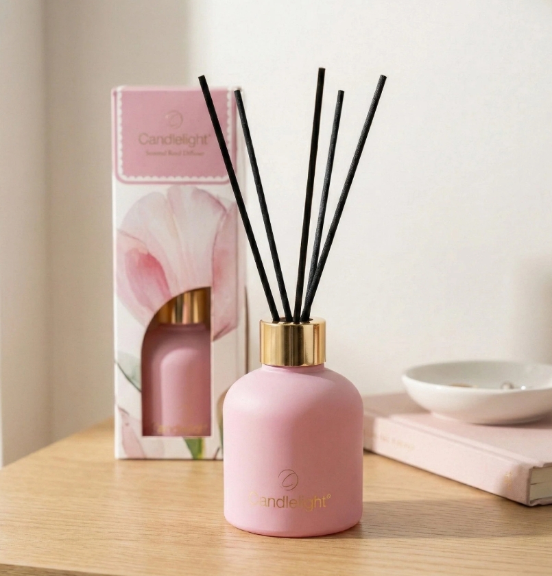 Bring a calm floral lift to your home with our 100ml pastel Flowers Reed Diffuser, presented in a soft pastel glass bottle with a chic gold collar and jet black reeds. The elegant bouquet diffuses steadily to perfume your space for weeks, creating a gentle, welcoming atmosphere in bedrooms, bathrooms, and living areas.