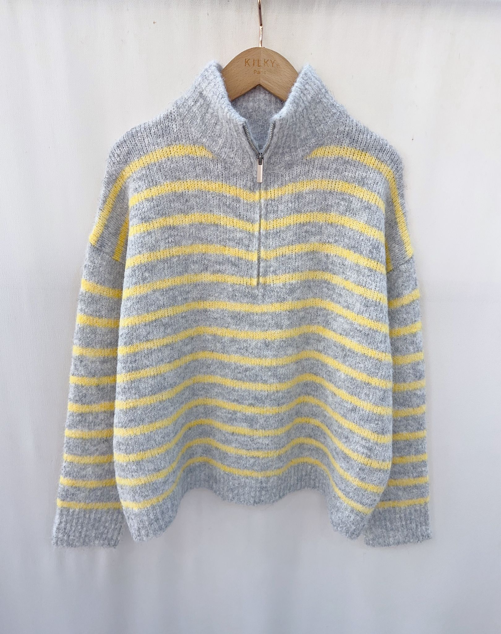 Featuring a flattering relaxed fit, soft-touch fabric and chic stripe design, this piece is as comfortable as it is stylish. The half-zip neckline adds a modern edge and lets you wear it open or zipped up for different looks.