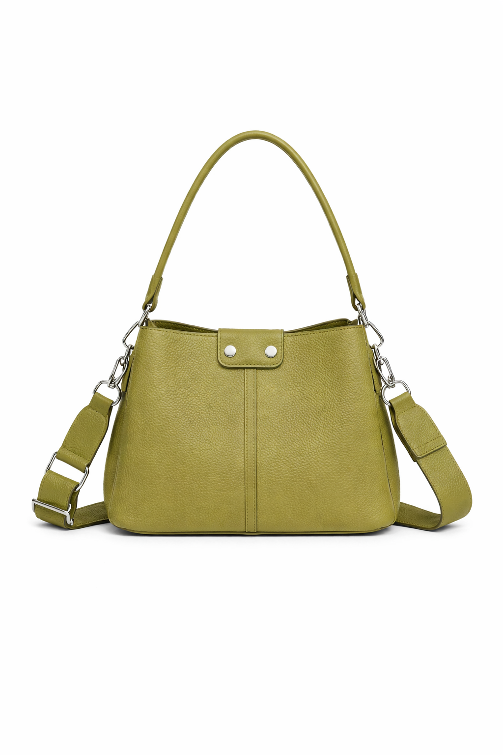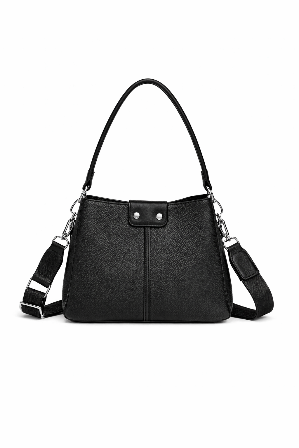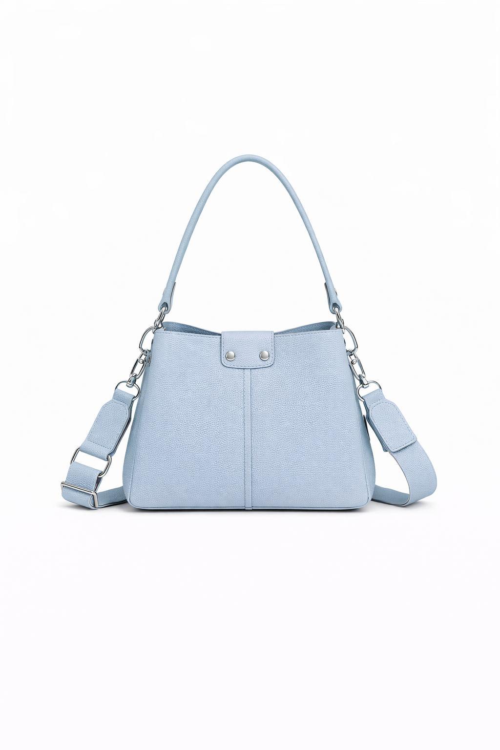 Finished with sleek silver hardware and dual strap options, you can wear it your way — carry it by the top handle for a polished look or use the adjustable crossbody strap for hands-free days.