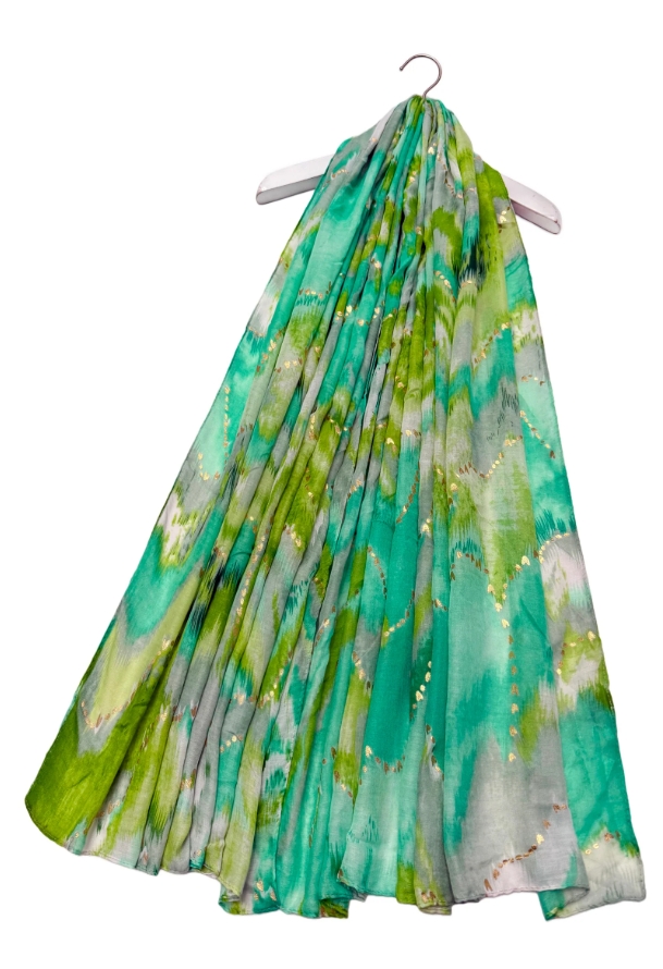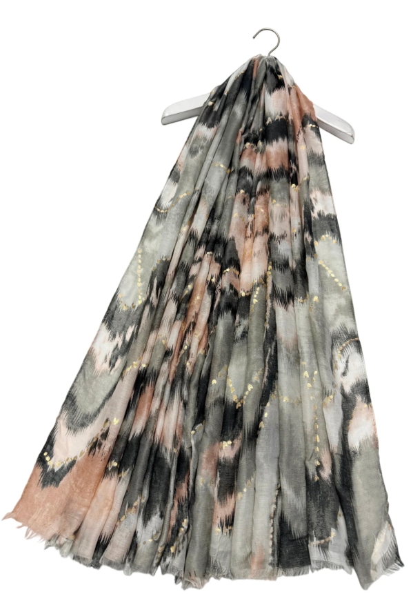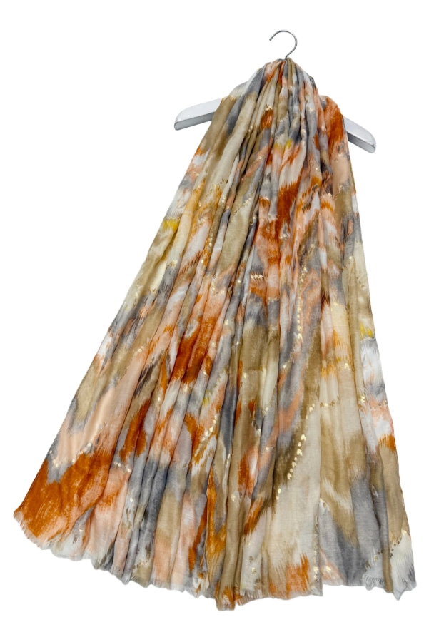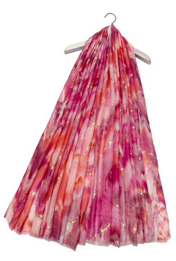 Tie Dye & Foiled Love Heart Frayed Scarf